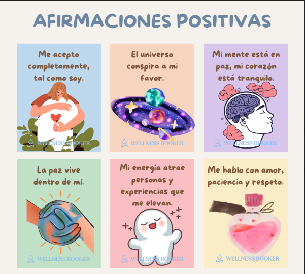 Las afirmaciones positivas son frases que nos ayudan a transformar los pensamientos limitantes en ideas que reflejen confianza, abundancia y bienestar emocional. Al repetirlas o escribirlas con constancia, estás entrenando tu mente para crear una nueva realidad emocional y mental.