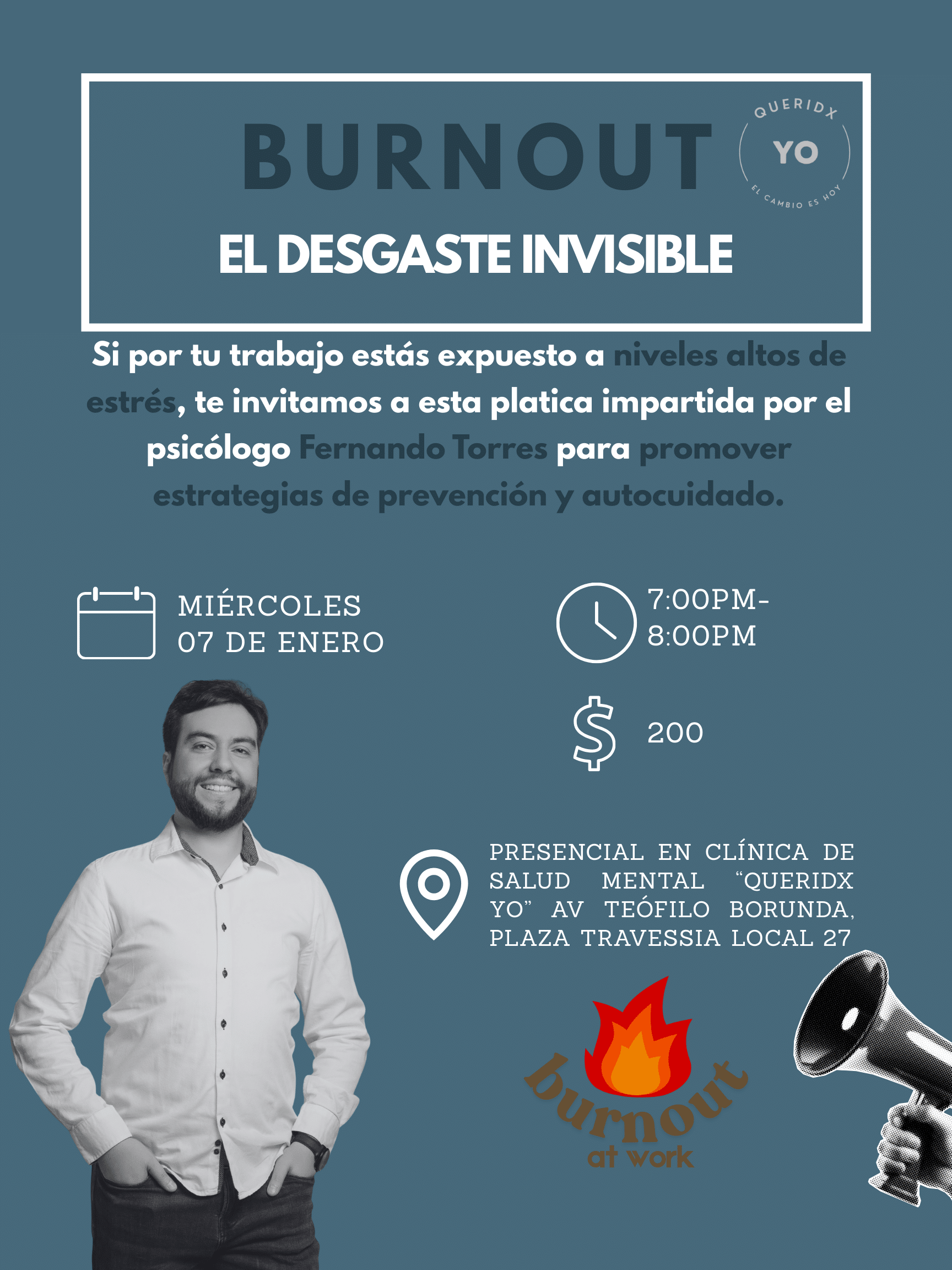 Esta platica tiene el objetivo de brindar herramientas prácticas y psicológicas para identificar el agotamiento crónico y establecer estrategias de autocuidado que permitan mantener un equilibrio entre la vida laboral y personal.