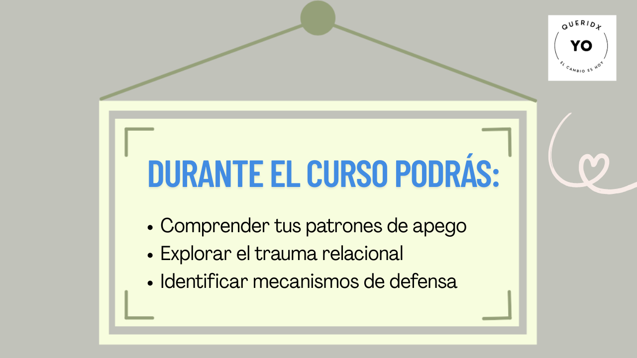 Este curso fue diseñado para brindar un espacio seguro donde puedas comprender cómo el apego, el trauma relacional y los mecanismos de defensa influyen en tus heridas emocionales y en tus procesos de reconciliación. A lo largo de este proceso, trabajarás en la validación de tu historia y en la construcción de conexiones más seguras, facilitando el camino hacia el perdón —hacia ti y hacia otrxs.