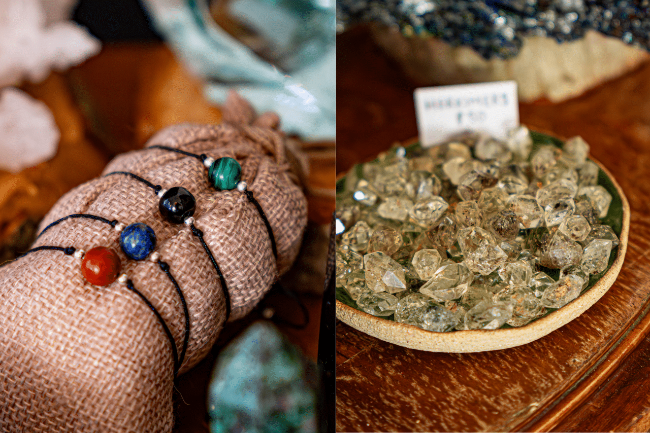 Cuarzos decorativos de gran tamaño como ancla energética y chicos para detalles de asistentes