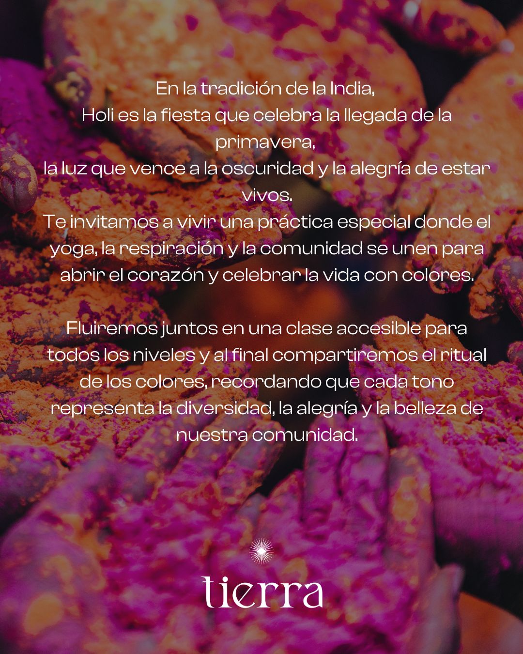 Te invitamos a vivir una práctica especial donde el yoga, la respiración y la comunidad se unen para abrir el corazón y celebrar la vida con colores.