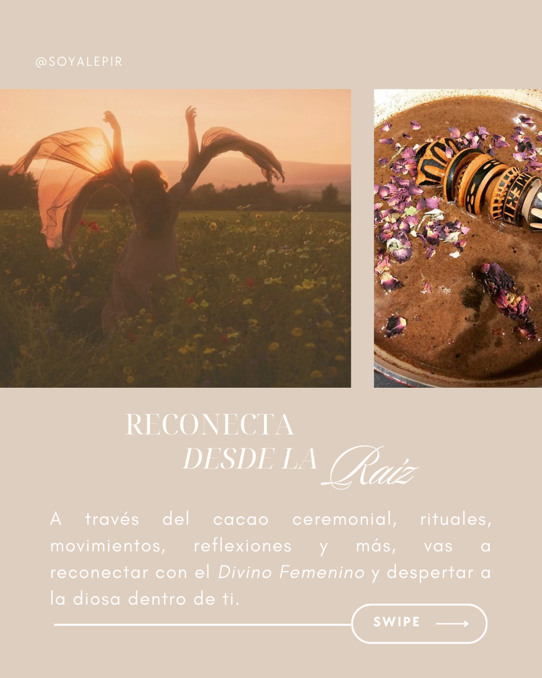 A través de la toma del cacao ceremonial, ejercicios de reflexión, movimiento consciente, rituales y meditaciones profundas, vamos a activar nuestro Divino Femenino.