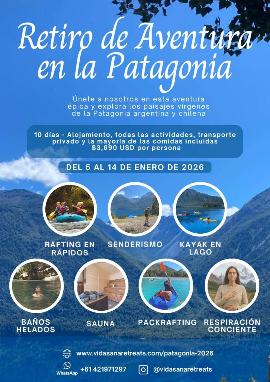Vive una experiencia épica de conexión, naturaleza y bienestar en uno de los lugares más impresionantes del planeta. Durante 10 días, recorrerás los paisajes vírgenes de la Patagonia mientras te sumerges en actividades diseñadas para revitalizar cuerpo, mente y espíritu.