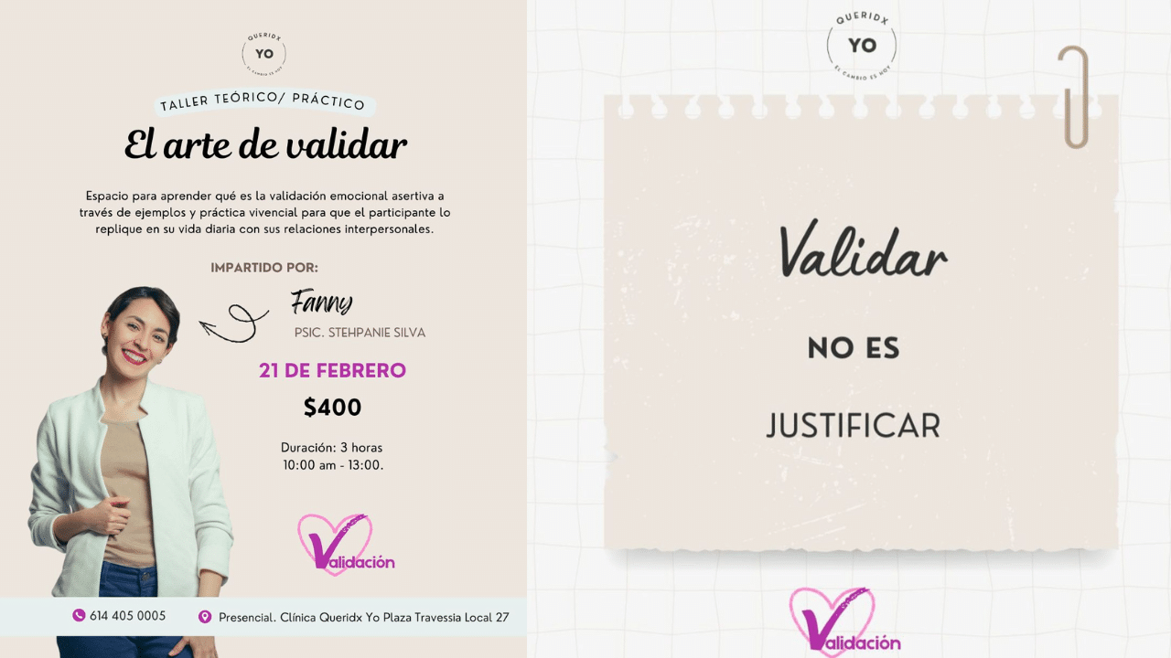 Te invitamos a “El arte de validar”, un taller teórico-práctico diseñado por la Psic. Stephanie Silva (Fanny) para transformar la forma en que te conectas con los demás.
