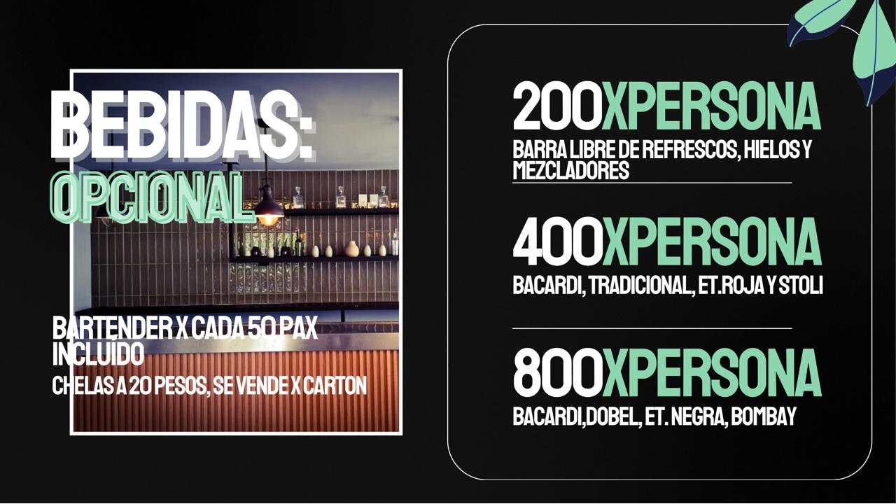 Bartender x cada 50 PAX incluido (Cervezas a $20.00, se vende por cartón)