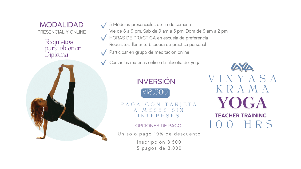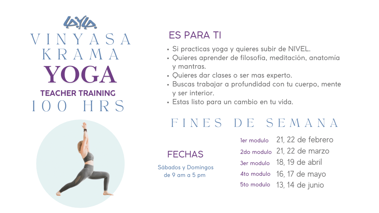 Aprenderás nombres de posturas, beneficios, ajustes, anatomía, anatomía sutil, historia y filosofía del yoga.