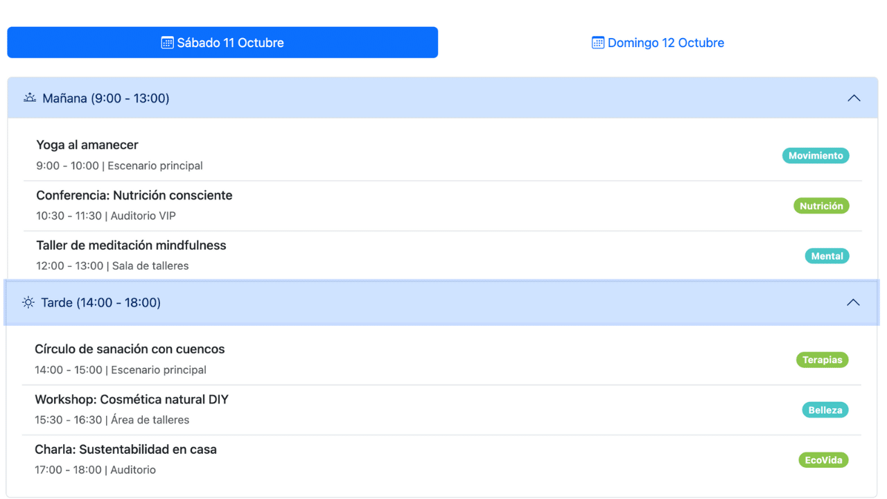 Durante dos días, podrás disfrutar de experiencias diseñadas para cuidar tu cuerpo, nutrir tu mente y reconectar con tu espíritu, a través de talleres, clases, conferencias y productos enfocados en el bienestar integral.